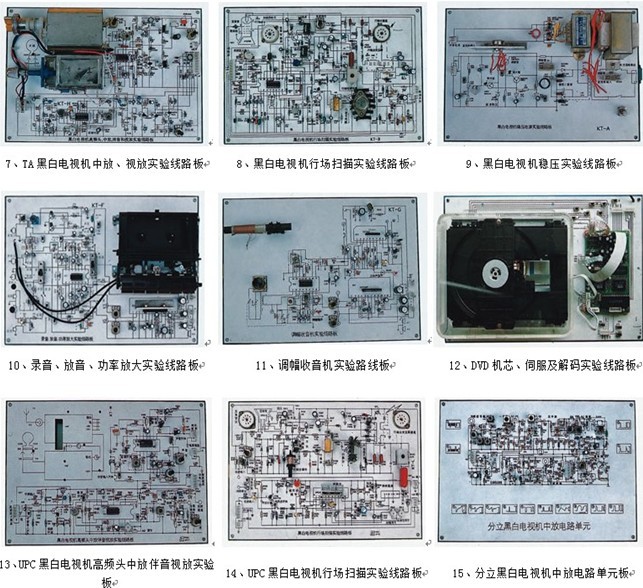 2、2號板:黑白電視機(jī),電源變壓器電路單元,整流濾波電路單元,黑白穩(wěn)壓電源電路單元,立體聲功率放大電路單元