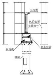 風(fēng)力發(fā)電系統(tǒng)由一臺5KW垂直軸風(fēng)力發(fā)電機(jī)組、尾翼、葉片、風(fēng)機(jī)控制器塔架等組成。