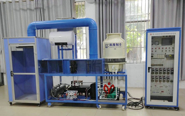 (1)中央空調(diào)系統(tǒng)實(shí)訓(xùn)平臺(tái) 是根據(jù)目前國(guó)內(nèi)建筑電氣,樓宇智能化精心設(shè)計(jì)的綜合實(shí)驗(yàn)裝置,本裝置結(jié)合當(dāng)前安防領(lǐng)域的先進(jìn)技術(shù),從教學(xué)實(shí)驗(yàn)的要求的角度出發(fā),以工程化的設(shè)計(jì)理念完整的實(shí)現(xiàn)了中央空調(diào)全空氣調(diào)節(jié)系統(tǒng)的工作過(guò)程。