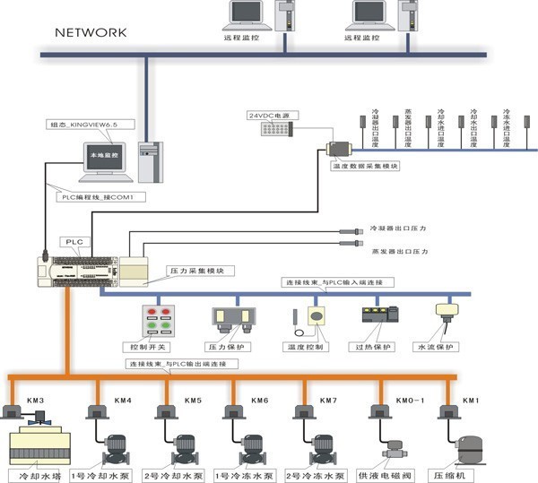 1、教師臺和學(xué)生臺電腦(1~32臺)可以同時監(jiān)控中央空調(diào)的運行狀態(tài),對中央空調(diào)的壓力、溫度等相關(guān)數(shù)據(jù)進(jìn)行采集和顯示。