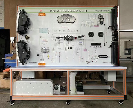 解放CA1122全車(chē)電器實(shí)訓(xùn)臺(tái)-是配合大專(zhuān)院校、部隊(duì)、汽修等專(zhuān)業(yè)的汽車(chē)培訓(xùn)技能之用,采用全新柴油機(jī)原車(chē)電器實(shí)物為基礎(chǔ),充分展示汽車(chē)儀表系統(tǒng)、燈光系統(tǒng)、雨刮系統(tǒng)、喇叭系統(tǒng)、發(fā)動(dòng)機(jī)電器系統(tǒng)、起動(dòng)系統(tǒng)和充電系統(tǒng)等汽車(chē)電器各系統(tǒng)的組成結(jié)構(gòu)和工作過(guò)程。適用于中高等職業(yè)技術(shù)院校普通教育類(lèi)學(xué)院和汽車(chē)培訓(xùn)機(jī)構(gòu)對(duì)汽車(chē)全車(chē)電器系統(tǒng)的理論和維修實(shí)訓(xùn)的教學(xué)需要。通過(guò)電路電器實(shí)訓(xùn)臺(tái)的演示,可清楚了解轎車(chē)內(nèi)部的電路電器結(jié)構(gòu)與功能,便于學(xué)生較快地掌握汽車(chē)的電路構(gòu)造和原理,提高學(xué)生對(duì)汽車(chē)電路的初步認(rèn)識(shí),使學(xué)生了解汽車(chē)電路起到更直觀更深入的教學(xué)目的,是各汽車(chē)學(xué)校對(duì)電路電器理論和維修實(shí)訓(xùn)的理想的教學(xué)設(shè)備。本設(shè)備滿足汽車(chē)職業(yè)教育的“五個(gè)對(duì)接十個(gè)銜接”的教學(xué)需要。
