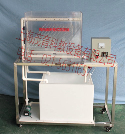 1、同向流斜板沉淀池體1套:透明有機(jī)玻璃材質(zhì)、厚度10mm,斜板1套:透明有機(jī)玻璃材質(zhì)、厚度6mm,斜板傾角60º;
