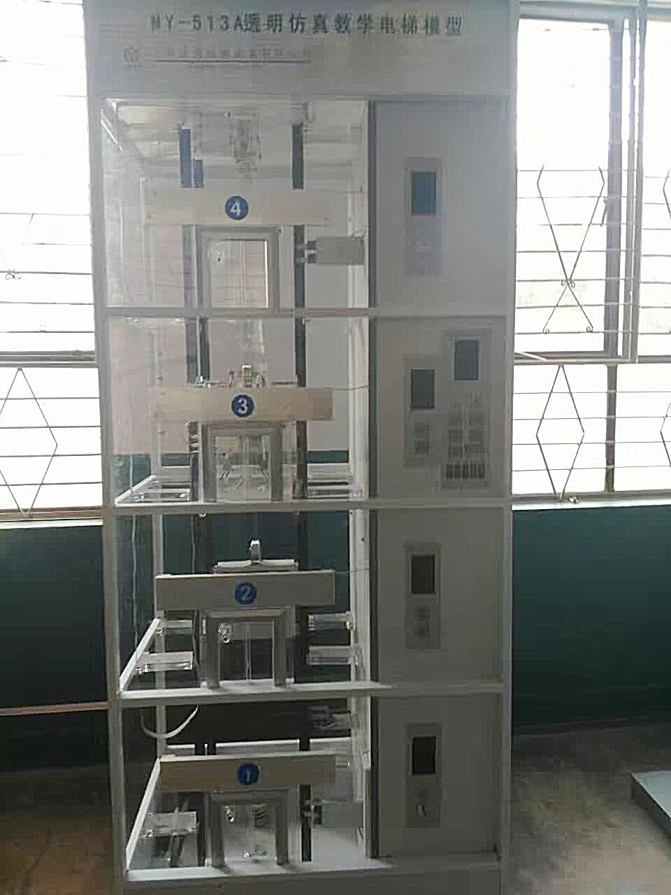 是根據(jù)最常見的升降式電梯結(jié)構(gòu),采用透明有機材料制成,其結(jié)構(gòu)與實際電梯完全相同,且?guī)缀蹙邆淞藢嶋H電梯的所有功能。事實上可以把它看作是小型化了的真實電梯。