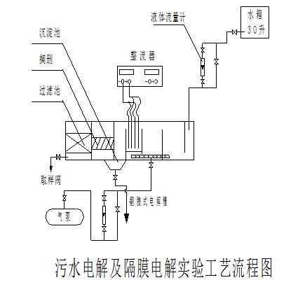 g) 靜態(tài)處理30分鐘后,逐漸打開并調(diào)節(jié)流量計(jì)旋鈕,并使原水進(jìn)水流量保持在額定值約10L/h;同時(shí)打開電解槽出水閥。