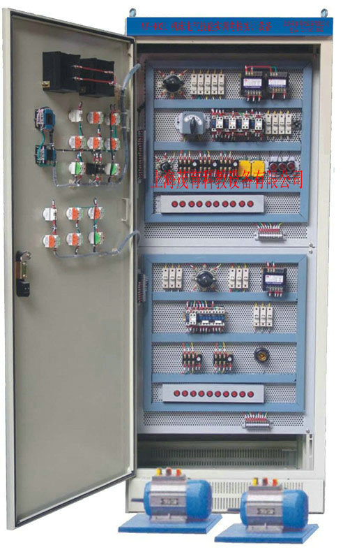1、本裝置采用標準配電柜為主體柜,充分利用該柜雙面空間位置,每一面分別設(shè)有機床電氣線路;
