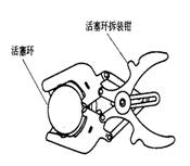 使用活塞環(huán)拆裝鉗時(shí),將拆裝鉗上的環(huán)卡卡住活塞環(huán)開口,握住手把稍稍均勻地用力,使拆裝鉗手把慢慢地收縮,環(huán)卡將活塞環(huán)徐徐地張開,使活塞環(huán)能從活塞環(huán)槽中取出或裝入。