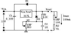 LM3l7L最大輸入電壓40V,輸出1.25V~37V,可調(diào)最大輸出電流100mA。
