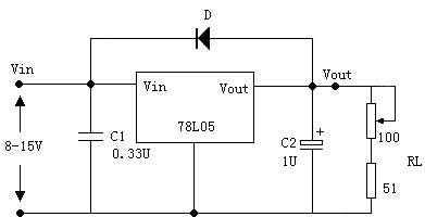 圖17-2 由7805構(gòu)成的串聯(lián)型穩(wěn)壓電源