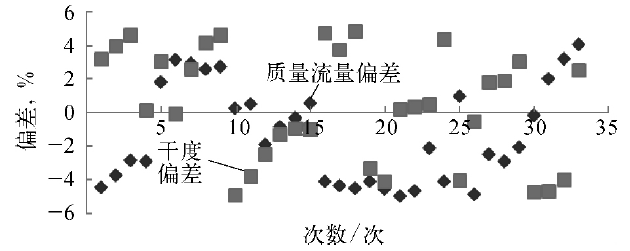 圖4 質(zhì)量流量和干度實(shí)驗(yàn)結(jié)果相對(duì)偏差示意