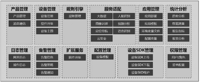 平臺除具備設(shè)備接入、設(shè)備管理、規(guī)則引擎、權(quán)限及安全管理等基礎(chǔ)功能外,還可提供大數(shù)據(jù)分析和人工智能等服務(wù)組件,為智能樓宇上層應(yīng)用提供大數(shù)據(jù)分析挖掘、GIS、語音識別、視頻分析和3D等高性能海量數(shù)據(jù)處理服務(wù)。智能樓宇平臺功能結(jié)構(gòu)如圖3所示。