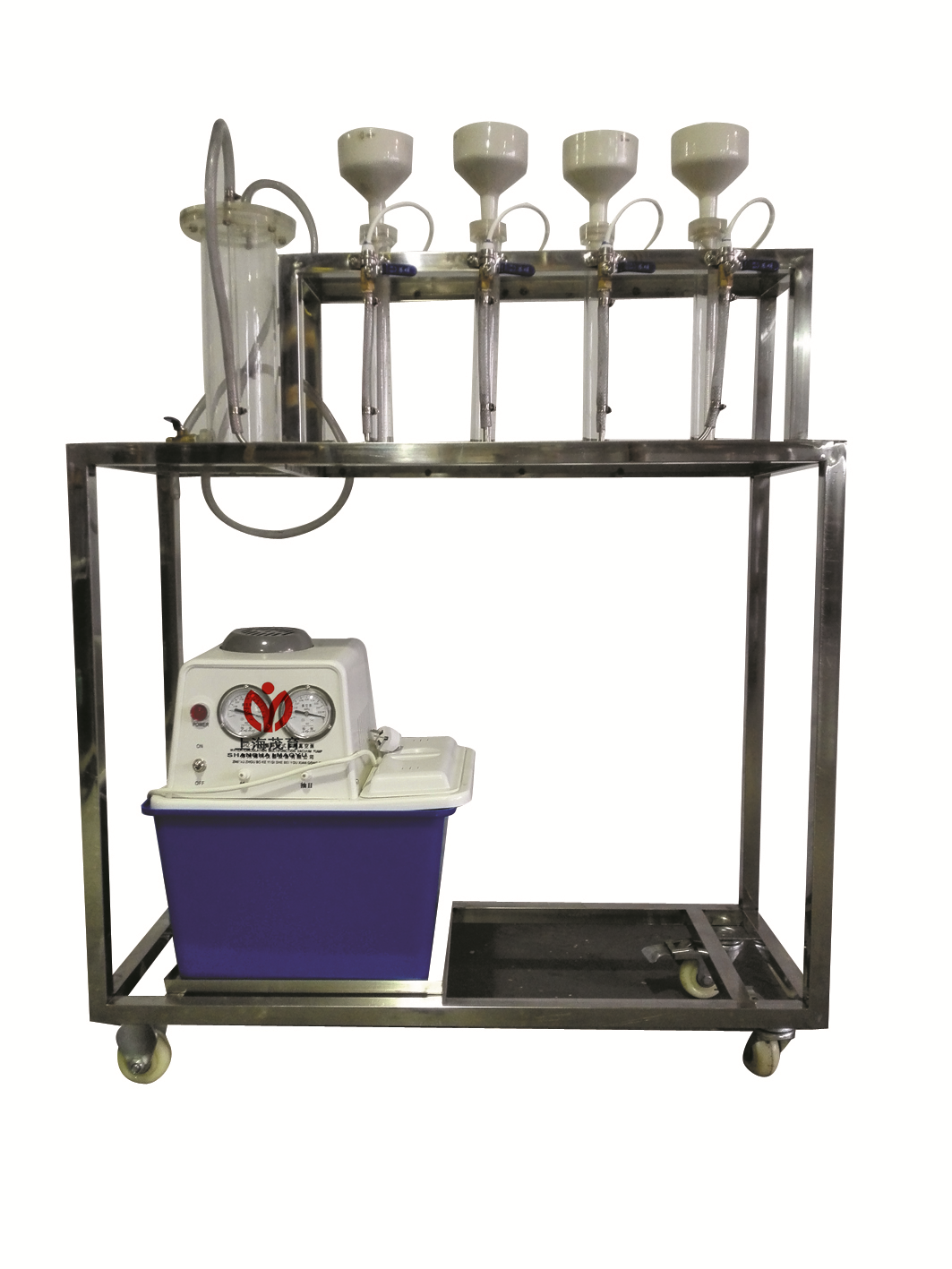 3.主要配置:真空泵、計量筒、緩沖罐、布氏漏斗、濾紙、高壓氣管、排空閥、不銹鋼框架。