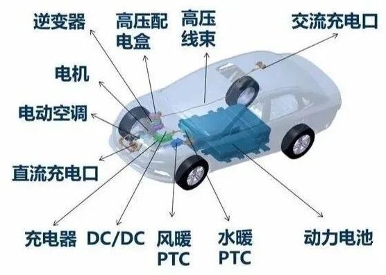 在電動(dòng)汽車(chē)上,整車(chē)帶有高壓電的零部件有動(dòng)力電池,驅(qū)動(dòng)電機(jī),高壓配電箱(PDU),電動(dòng)壓縮機(jī),DC/DC,OBC,PTC,高壓線束等,這些部件組成了整車(chē)的高壓系統(tǒng),其中動(dòng)力電池,驅(qū)動(dòng)電機(jī),高壓控制系統(tǒng)為純電動(dòng)汽車(chē)上的三大核心部件。