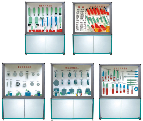 | 第四柜、銑削刀具及應(yīng)用 | 圓柱形銑刀、成形銑刀、角度銑刀、鍵槽銑刀、半圓形銑刀、立銑刀、整體焊接式端銑刀、齒輪銑刀、直齒三面刃盤銑刀、錯(cuò)齒三面刃盤銑刀、硬質(zhì)合金端銑刀、銑階臺(tái)、銑特形面( 2 種)、圓柱銑刀銑平面。 |