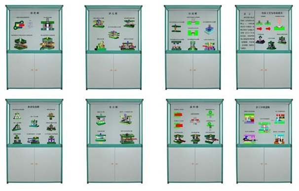 | 第三柜 沖孔模 | 1、斜楔式水平?jīng)_孔模;2、超短凸模的小孔沖模;3、全長(zhǎng)導(dǎo)向結(jié)構(gòu)的小孔沖模;4、懸臂式?jīng)_孔模;5、沖孔落料連續(xù)模 | |