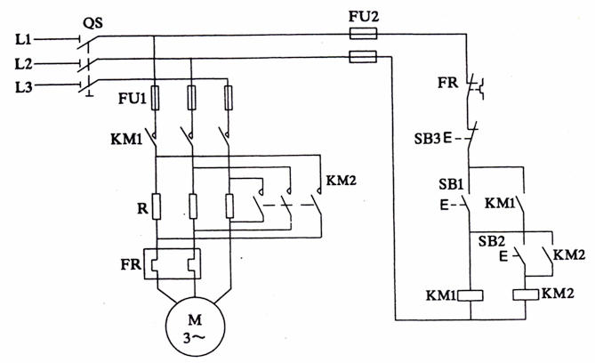 接觸器控制串聯(lián)電阻降壓起動線路實驗圖