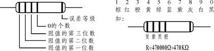 2) 根據(jù)色環(huán)電阻器的色環(huán),讀取阻值與所標(biāo)定的值進(jìn)行對(duì)照,看是否正確。