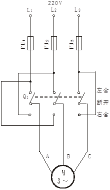 圖1 倒順開關(guān)正反轉(zhuǎn)控制線路