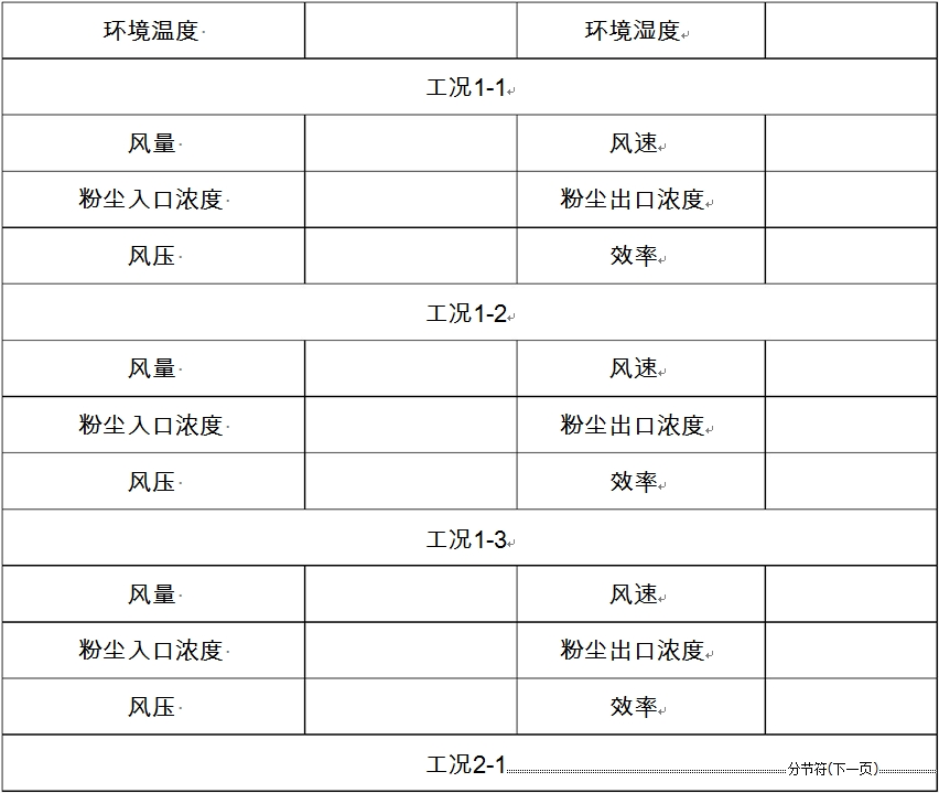 8.啟動(dòng)顯示屏開(kāi)關(guān),讀取實(shí)驗(yàn)系統(tǒng)自動(dòng)采集到的風(fēng)量、風(fēng)速、風(fēng)壓、除塵效率、粉塵出、入口濃度、環(huán)境空氣濕度和溫度數(shù)據(jù);也可啟動(dòng)打印開(kāi)關(guān),將數(shù)據(jù)輸出;