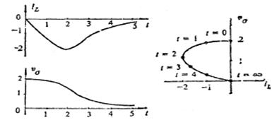圖5-1 RLC電路在過阻尼時(shí)的狀態(tài)軌跡